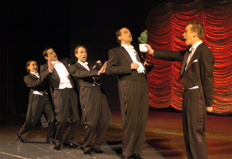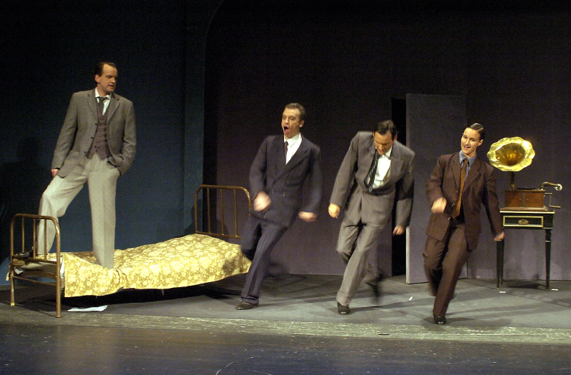 ...In einer Inszenierung des Nordharzer Städtebundtheaters wird mit viel Schwung die Geschichte der ersten deutschen Boygroup, der Comedian Harmonists, erzählt. Vom ungeheizten Dachstübchen in einem Berliner Mietshaus bis auf die Showbühnen der Welt, von den angeblich goldenen Zwanzigern bis hin zum braunen Sumpf, in dem die weltberühmte Gruppe unterging....Regisseur Klaus Seiffert führt die Darsteller....mit leichter Hand und führt sie zu sehenswerten Leistungen....