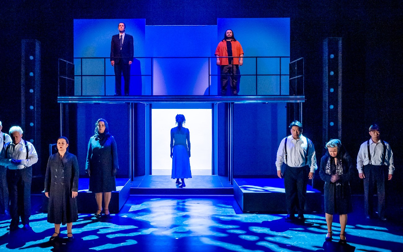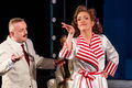 K.S.: Diese Inszenierung entstand noch im Corona-Lockdown unter strengen Auflagen. So durften von den 31 Mitwirkenden immer nur maximal 12 gleichzeitig auf der Bühne sein; alle mussten 1,5 Meter Abstand zueinander einhalten, das Orchester unter der Leitung von Florian Kießling wurde verkleinert etc. Barbara Krott entwarf eine praktikable, auf das Wesentliche konzentrierte Ausstattung und Mario Mariano choreographierte sogar einen erotischen Tango ohne Berührungen. Als die Premiere endlich herauskam (coronabedingt 6 Wochen später als geplant), war die Begeisterung groß!