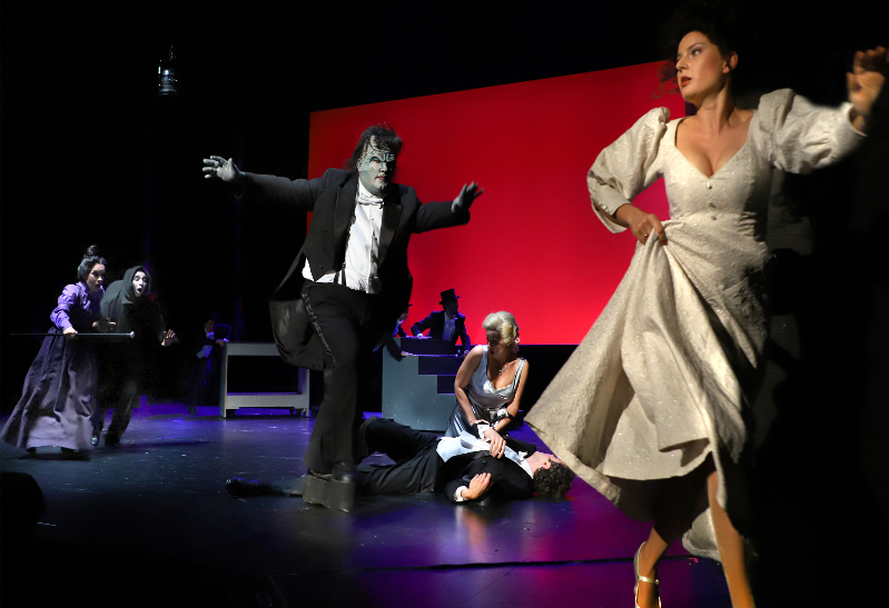 In aschfahle grüne Schminke getunkt gibt Philipp Werner ein hinreißend gruseliges Monster. Und Samuel Schürmann präsentiert die Titelrolle sensationell leicht. Gesanglich hat er viel zu bieten und es gehört zum speziellen Humor dieses Musicals, dass dies im Libretto mehrmals benannt und wiederholt wird... Das Theater Pforzheim setzt ihn aufrichtig und liebevoll in Szene: Eindeutig doppeldeutiger Horrorklamauk.