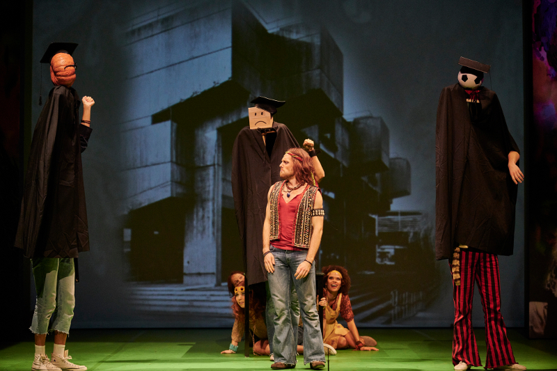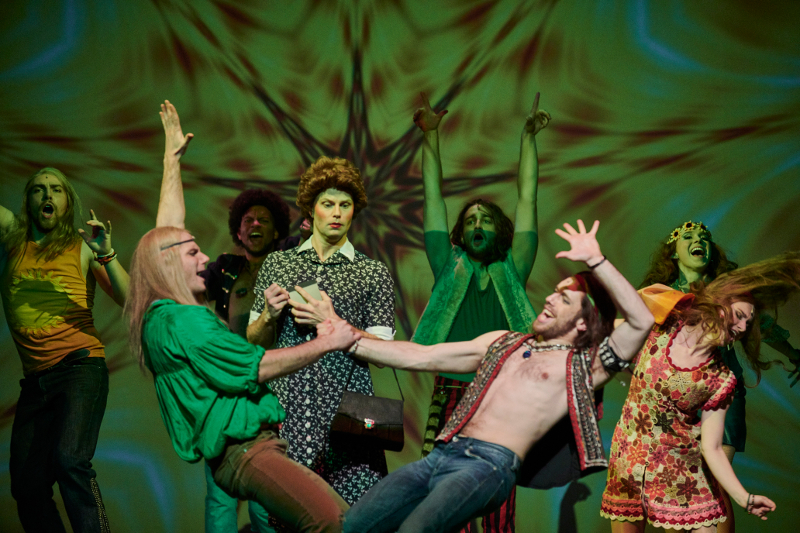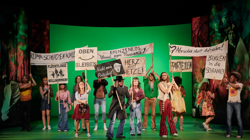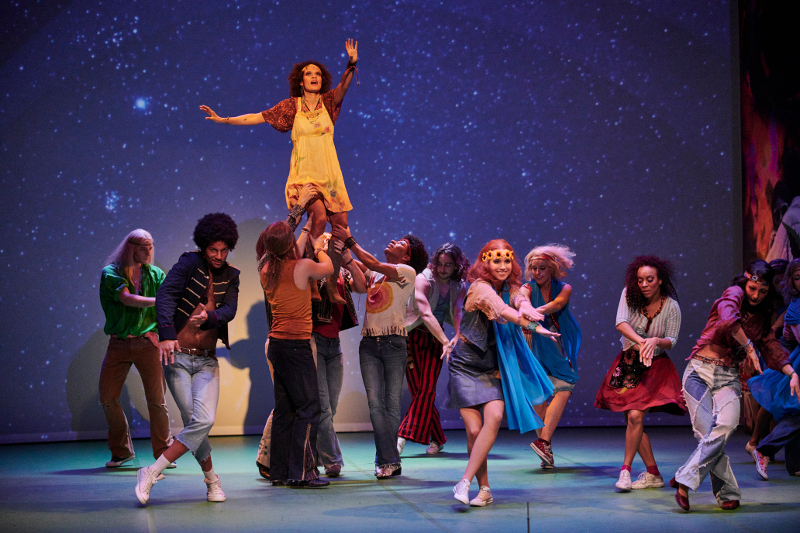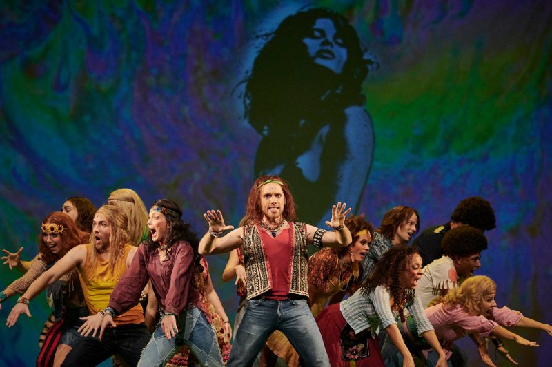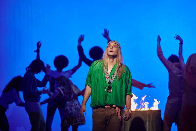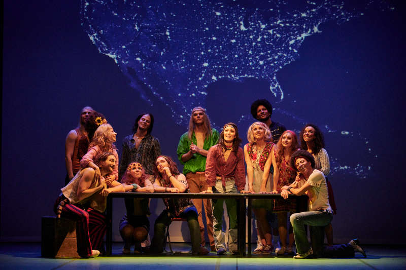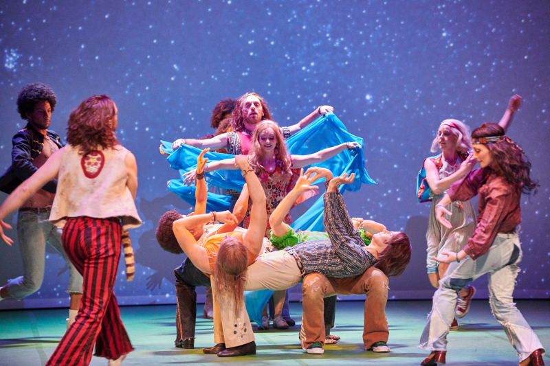 "Klaus Seiffert’s lively production often feels like a nostalgia trip, complete with a tie-dyed set and psychedelic projections, despite references to both President Barack Obama and President Trump ... the skilled performers ooze innocence, joy and exhilaration."