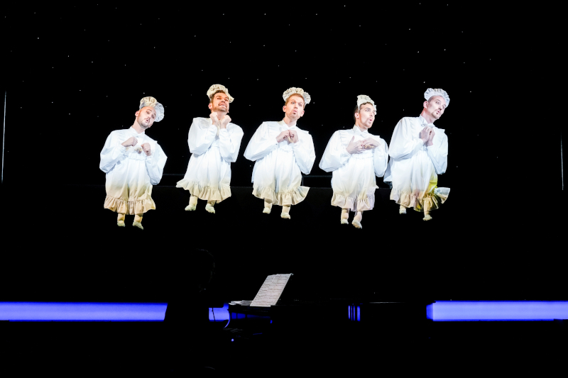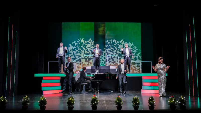 K.S.: Eine Revue mit dem Ensemble meiner Stuttgarter Inszenierung „Die Comedian Harmonists“ und der Schauspielerin/Sängerin Amelie Sturm. Ein Programm, das in zwei Versionen Weihnachts- und Neujahrsthemen aufgreift, in der noch nicht überstandenen Pandemie Mut macht und gute Musik mit Humor garniert, das war unser Anspruch bei HALLELUJA! Mario Mariano setzte die Sänger in Bewegung, und Barbara Krott bot mit der Ausstattung viel für´s Auge. Jubelnde Zuschauer dankten es uns in 42 ausverkauften Vorstellungen.