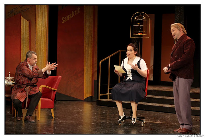 K.S.: Diese Produktion entstand für die Theater Halberstadt und Quedlinburg, alle Rollen aus dem Schauspiel- und Musiktheater-Ensemble besetzt. Im Sommer 2012 fanden auch einige Vorstellungen bei den Open Air Festspielen im Harzer Bergtheater statt. Julia Siebenschuh und Arnold Hofheinz (beide waren schon in Klaus Seifferts Inszenierung "Der kleine Horrorladen" dabei) glänzten als Eliza und Higgins. Barbara Krott hat das Stück im Stil der 1950er Jahre ausgestattet, mit einer großen Wortsuchtafel als zentrales Element.