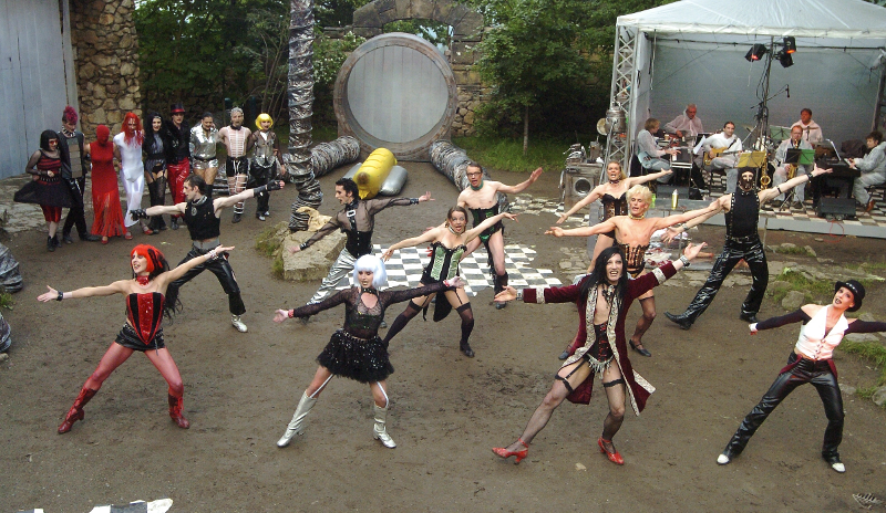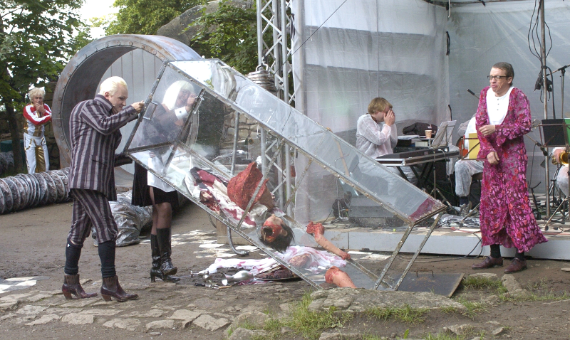 K.S.: Diese Produktion spielte Open Air und war besetzt mit Solisten des Musiktheaters. Um die ausgetretenen Pfade zu verlassen, habe ich eine neue Rahmenhandlung erfunden. Das Bühnenbild ließ Imme Kachel zum Teil aus Schrott bauen und so konnten wir - frei nach "Raumpatrouille Orion" - einige Haushaltsgeräte als High-Tech-Waffen zweckentfremden.