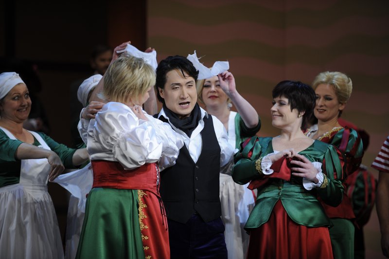 Übersetzung: Alle Segel sind gesetzt in Klaus Seifferts Inszenierung eines der überschäumendsten und populärsten Werke von Johann Strauss: Solisten und Chor, Orchester, Ballett, einfallsreiche Kostüme sowie ein humoristisches und gut funktionierendes Bühnenbild; es wird für alle Platz geschaffen, Laune und Energie sind Spitze. Die vielen Elemente sind gut eingearbeitet, und mit hoher Stimmung, Fest und Farben wird die beabsichtigte Wirkung am Schleswig-Holsteinischen Landestheater erreicht.